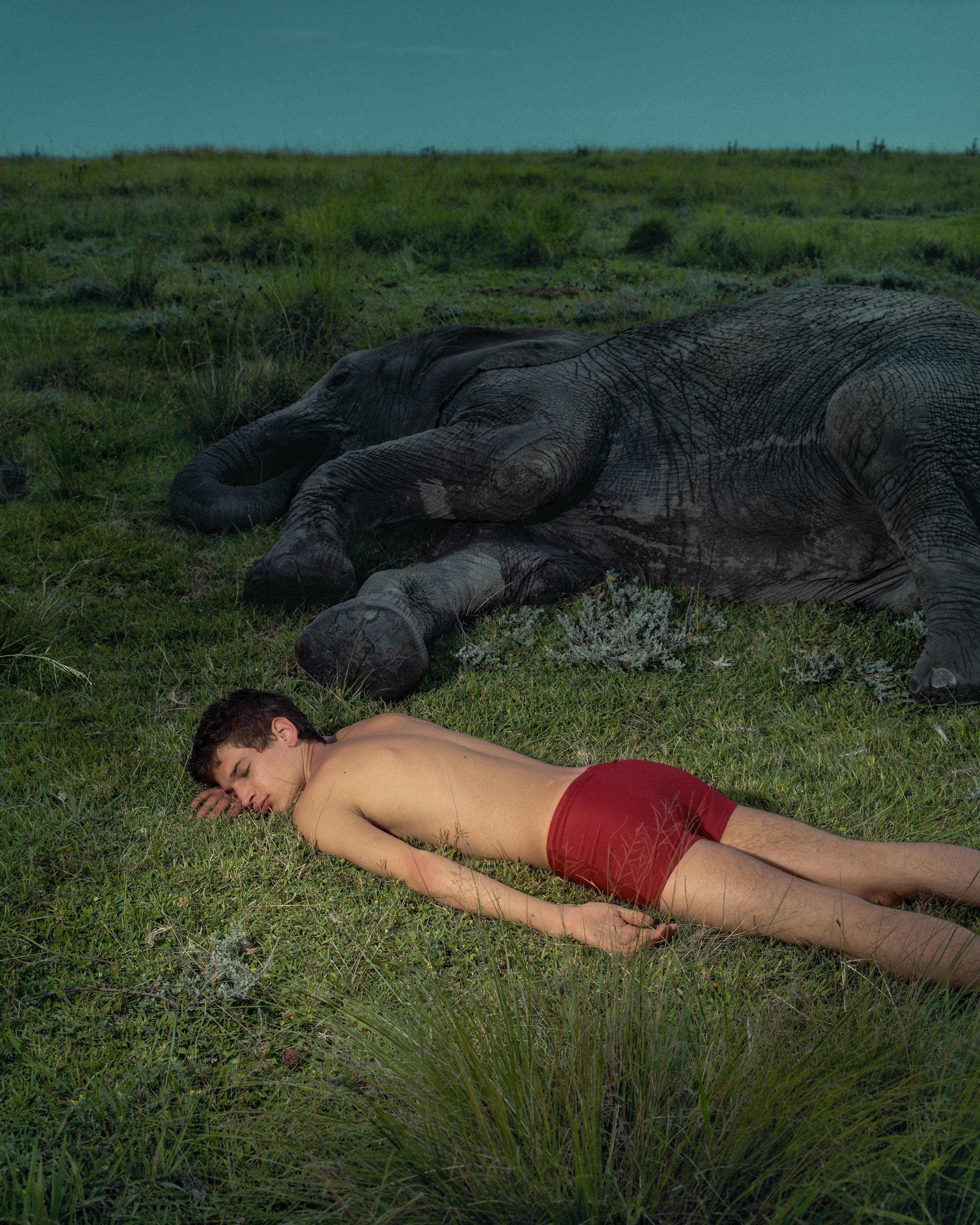 I will never forget the animals that inspired me to pursue my dreams with passion. There is nothing like observing the perfection of nature and the experience of humility it provides you when you realize your place in it. I have been back to this sanctuary many times to visit Harry, Sally & Duma (the tusk-bearing stars of the 'Elephant Boy' series.) This photograph is an ode to my beloved homeland of South Africa and a glimpse into a realm where humans and elephants are both safe enough to ‘dream together.’ This first limited edition series of 11 prints are un-retouched, shot on film with a Pentax 6x7. Limited edition of 11, 16x20 inches, framed, signed by me, and authenticated with the Saint Studio seal.